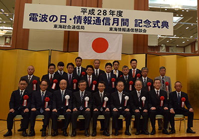受彰名:東海総合通信局長表彰 電波利用・情報通信の発展に貢献し、その功績が顕著であった団体(東海総合通信局長表彰)に対し、総務省東海総合通信局長から表彰状を授与されました。