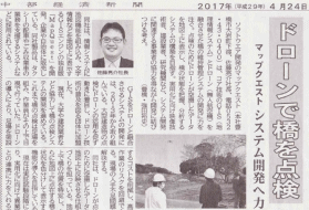 中部経済新聞に当社ドローン事業が掲載されましたマップクエスト編集部2017年5月11日読了時間: 1分更新日:2020年4月12日2017年4月24日の中部経済新聞に、弊社のドローンを活用したシステム開発の取り組みが掲載されました。弊社は、GIS(地理情報システム)のソフトウェア開発に特化した、技術主導のソフトウェア開発会社です。 2013年から、GISとドローンを融合させた「橋の維持管理システム」の開発に取り組んでいます。 今後、実用化へ向け異業種との連携を強化し、ドローンを組合わせてGISの可能性を広げたいと考えています。 本件についてのお問い合わせはこちらから#GIS #システム開発 #ドローン
